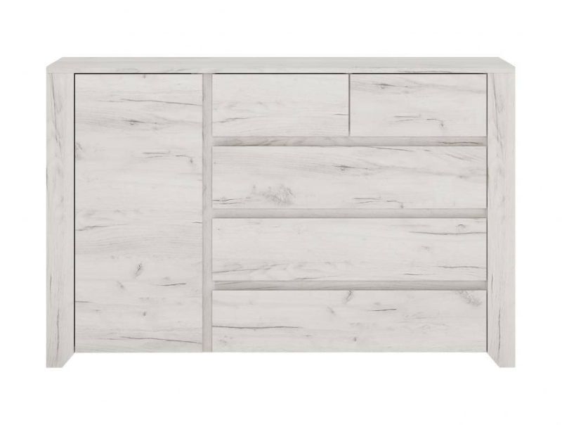 Komoda s piatimi zásuvkami a jednými dvierkami dub white craft