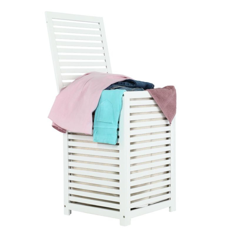 Kôš na bielizeň vyrobený z lakovaného bambusu v bielom prevedení. Textilná vložka v béžovej farbe je vyberateľná a možné ju prať v práčke. Úložný priestor je odvetrávaný, čím zaisťuje cirkuláciu vzduchu