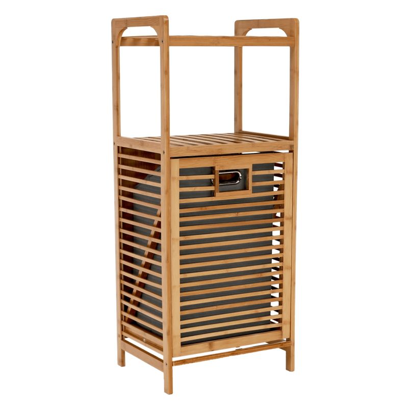 Praktický kôš na bielizeň vyrobený z lakovaného bambusu v prírodnej farbe. Disponuje vyberateľným vnútorným vreckom zo sivej látky, ktoré sa dá ľahko čistiť vlhkou handričkou. Okrem toho ponúka otvorený úložný priestor s policami, čo zvyšuje jeho funkčnosť. Vďaka jedinečným vlastnostiam je vhodný do kúpeľne, predsiene, detskej izby či obývačky