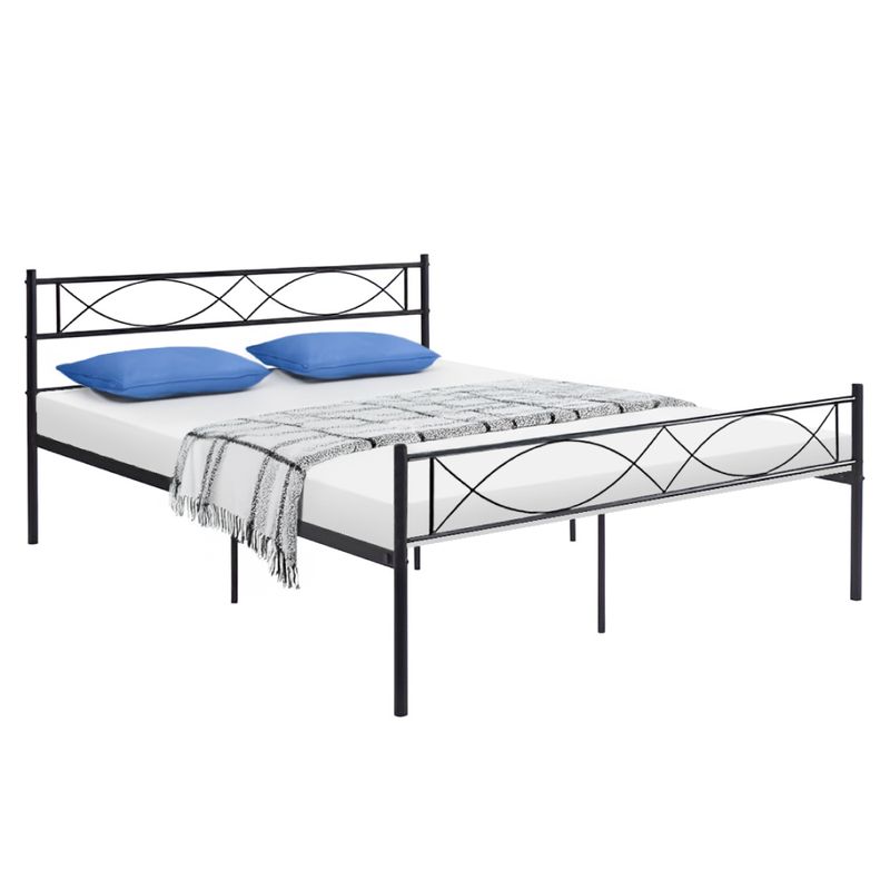 Moderná manželská posteľ s kovovým rámom spája minimalistický dizajn, odolnosť a nadčasovú eleganciu. Pevná konštrukcia zaručuje stabilitu a dlhú životnosť, zatiaľ čo čierne prevedenie dodáva spálni sofistikovaný a výrazný charakter. Posteľ je vybavená kovovým roštom, ktorý poskytuje optimálnu oporu pre matrac a pohodlný spánok.