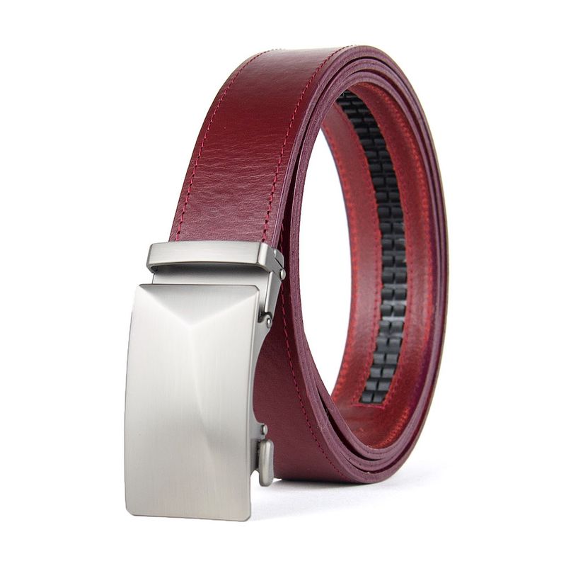 Kožený opasok NICKEL XYRON 3,5 cm, automatická pracka, Bordový
