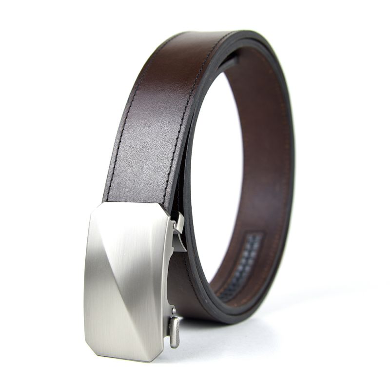 Kožený opasok s automatickou prackou 3D NICKEL NEW - Tmavo hnedá