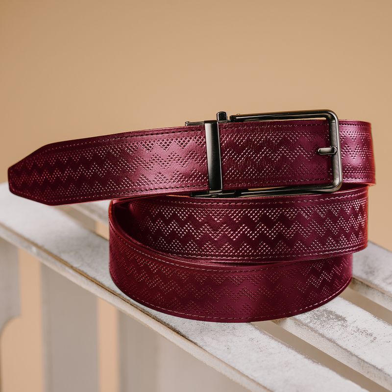 Ručne spracovaná talianska koža s dekorom dodáva opasku luxusný vzhľad a jedinečný charakter. Vďaka bordovej farbe pôsobí sofistikovane a zároveň odvážne. Tento opasok je detail, ktorý rozhoduje – o Vašom štýle, dojme aj sebavedomí.