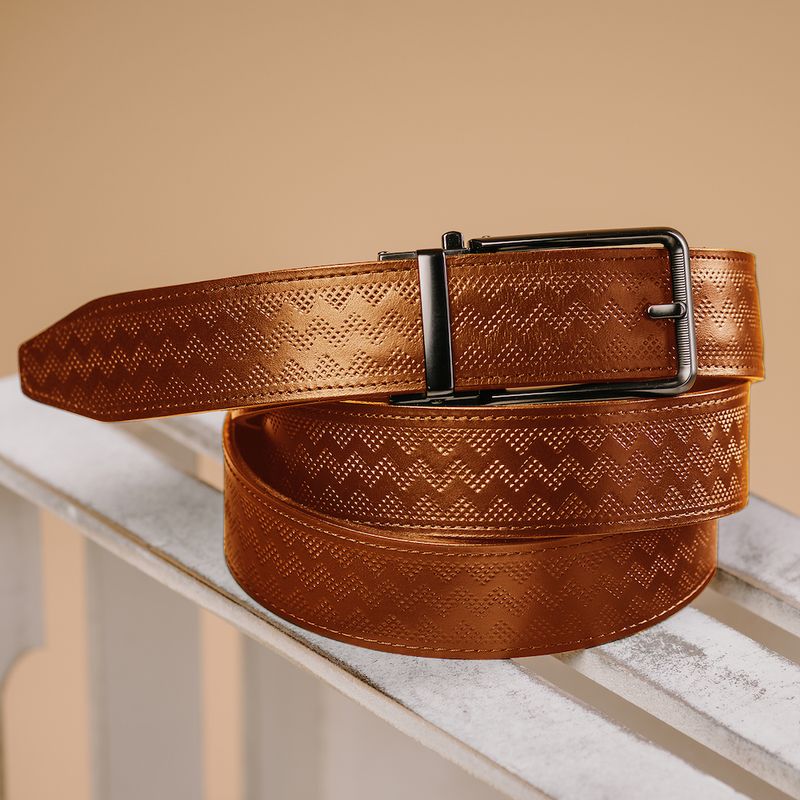 Kožený opasok s dekorom a automatickou prackou – BLACK CLOSE, limitovaná edícia, koňakový
