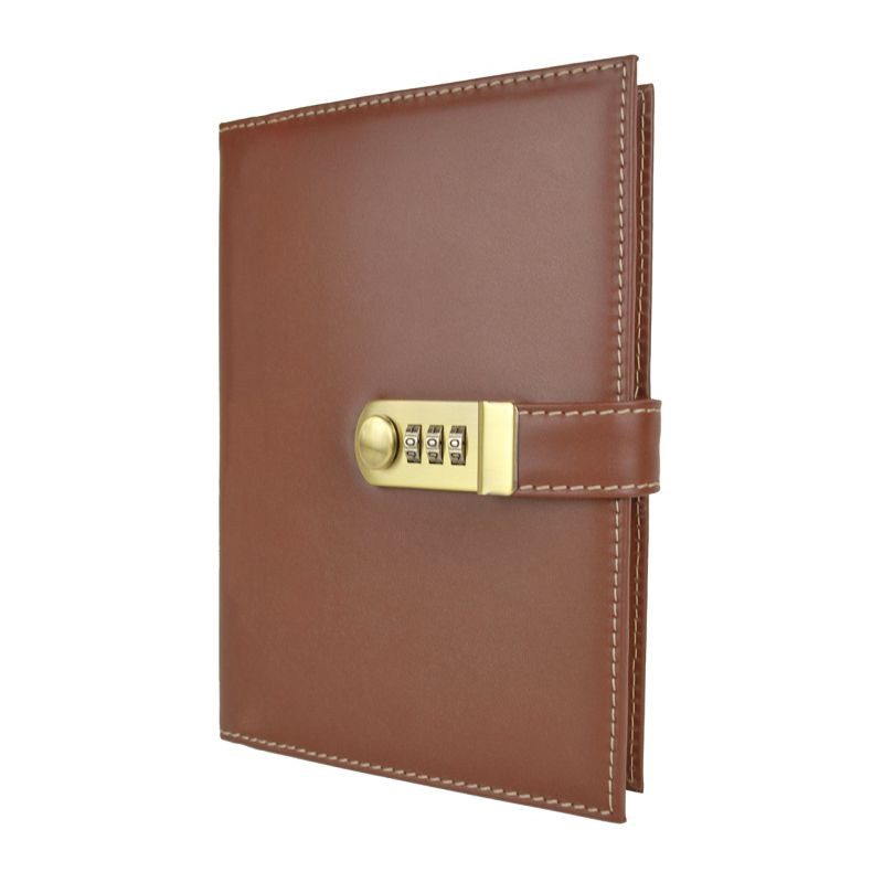 Kožený zápisník XXL s číselným zámkom v hnedej farbe