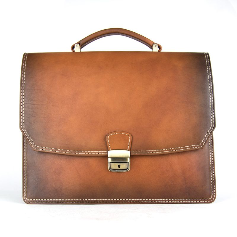 Luxusná kožená aktovka z pravej kože ručne tamponovaná v Cigaro farbe
