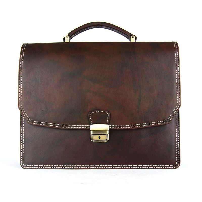 Luxusná kožená aktovka z pravej kože ručne tamponovaná v tmavo hnedej farbe