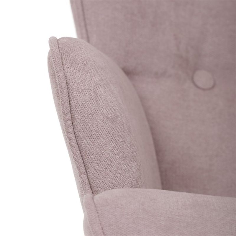 Hojdacie kreslo je čalúnené jemnou látkou, ktorá je príjemná na dotyk a zároveň odolná voči každodennému používaniu. Ozdobné gombíky na operadle dodávajú kreslu jedinečný šarm a rafinovanosť, zatiaľ čo ergonomicky tvarované sedadlo poskytuje maximálny komfort. Či už si chcete oddýchnuť pri dobrej knihe, vychutnať si šálku kávy alebo si jednoducho dopriať chvíľu relaxu, toto kreslo bude vaším verným spoločníkom.