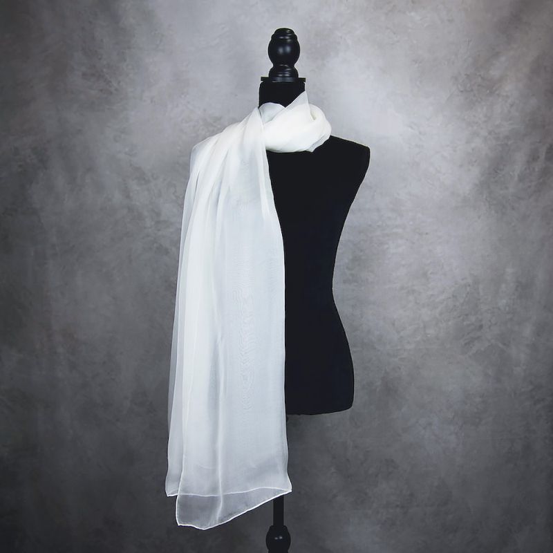 Tento biely luxusný hodvábny šál je vyrobený na Slovensku z pravého 100% prírodného hodvábu.