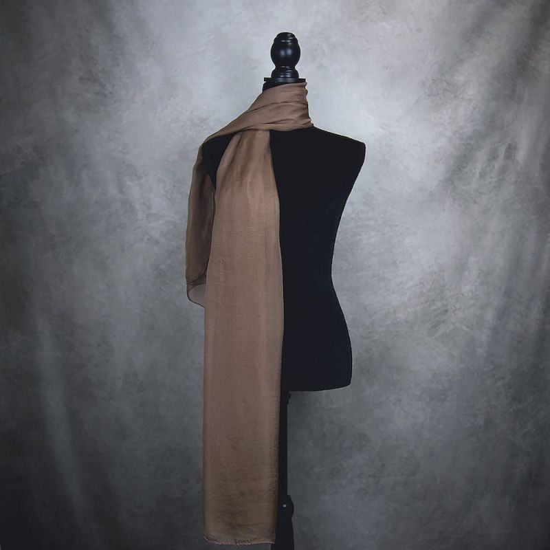 - Tento hnedý hodvábny šál je vyrobený z typu chiffon s hrúbkou 5 mm, čo je ideálne na použitie počas jari, leta alebo jesene.