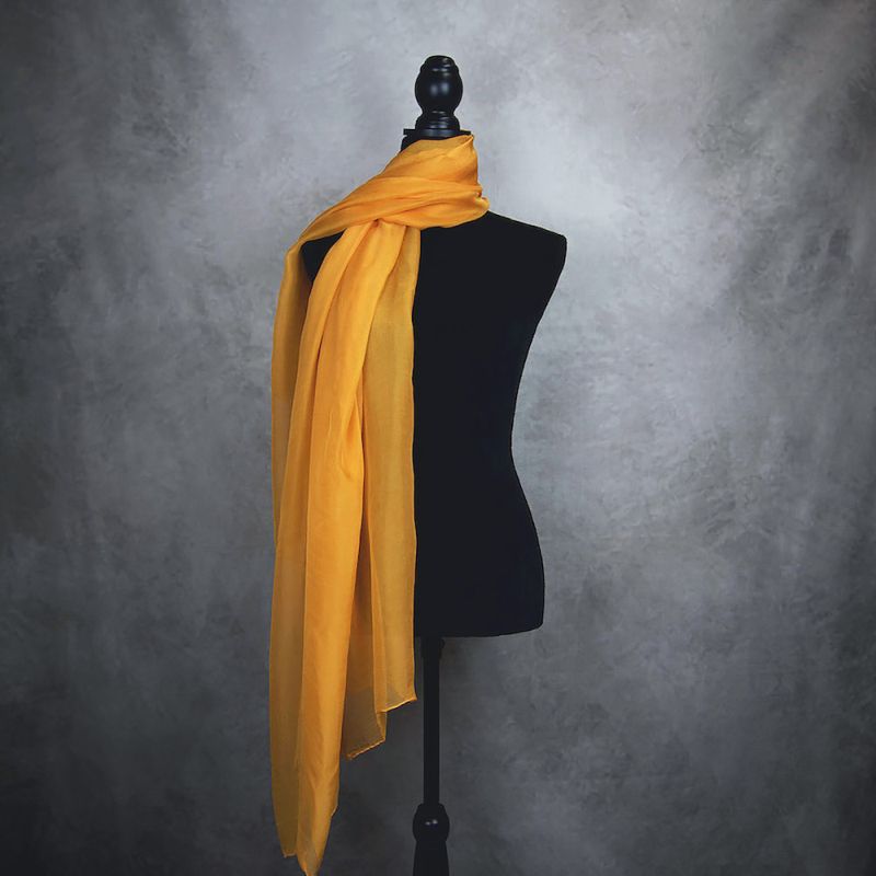 Luxusný hodvábny šál ORANŽOVÝ je štýlový doplnok vyrobený na Slovensku z pravého 100% prírodného hodvábu. Tento šál je oku lahodiaci a príjemný na dotyk, a jeho farebný odtieň prinesie energiu a sviežosť do vášho outfitu.