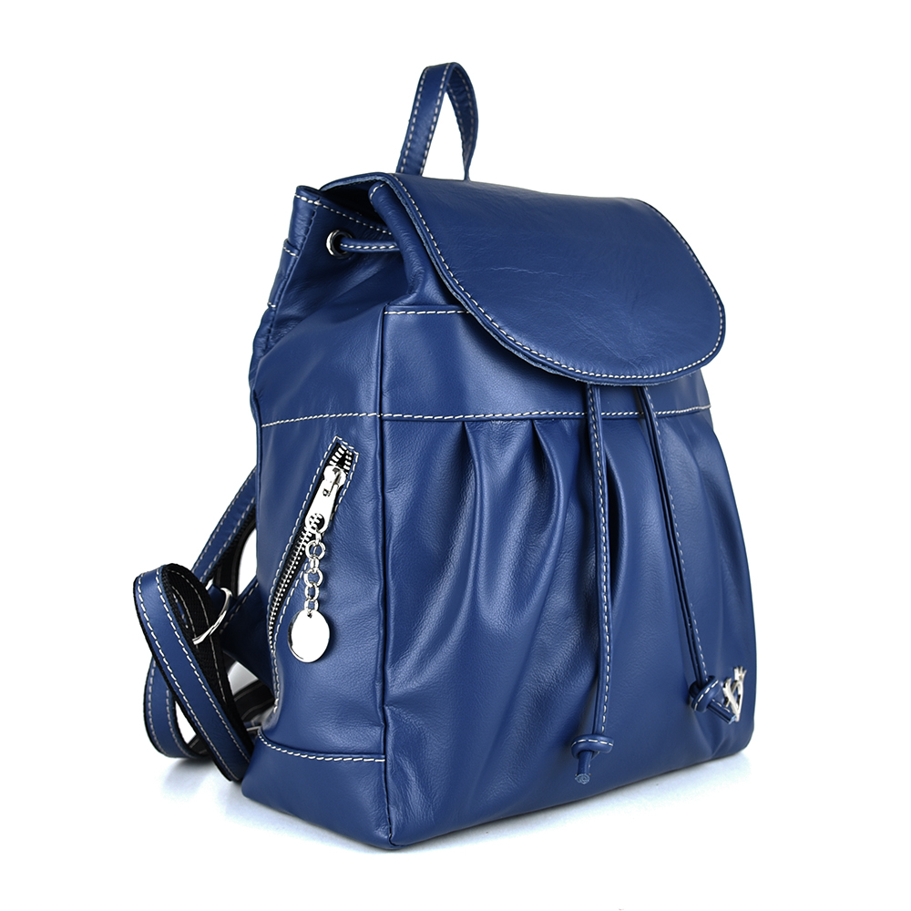 Luxusný kožený ruksak z pravej hovädzej kože 8665 v modrej farbe