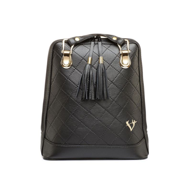 Luxusný kožený ruksak z pravej hovädzej kože so strapcami v čiernej farbe