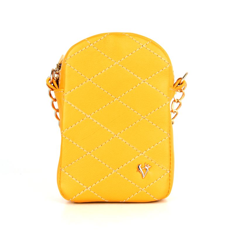 Malá kožená kabelka na mobil v horčicovej farbe