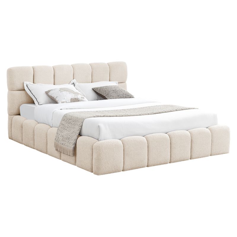 Manželská posteľ 160 s úložným priestorom, roštom a čalúneným čelom, béžová Bouclé látka
