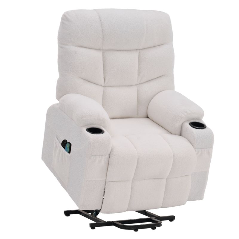 Masážne elektrické relaxačné kreslo s podnožou v elegantnej bielej farbe a látke Bouclé vám poskytne maximálny komfort a oddych po náročnom dni. Moderný dizajn kombinuje štýl s funkčnosťou, vďaka čomu sa kreslo hodí do každého interiéru