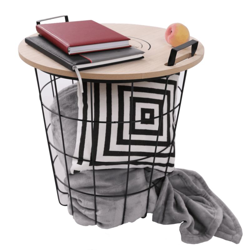 Minimalistický príručný stolík so štýlovou kombináciou čiernej kovovej konštrukcie a vrchnej dosky z MDF v prírodnom vzore. Praktický aj dizajnový kúsok do každého interiéru. Vrchná doska je snímateľná, čím stolík získava úložný priestor. Dopĺňajú ho dve kovové rúčky pre jednoduchú manipuláciu