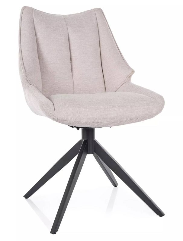 Ergonomicky tvarované operadlo s dekoratívnym prešívaním a hlboké sedadlo zabezpečujú vysoký komfort pri sedení. Poťahová látka Brego je príjemná na dotyk, odolná a vhodná na každodenné používanie. Stabilný kovový rám v čiernom matnom prevedení dodáva stoličke vizuálnu eleganciu a pevnosť. Praktická otočná funkcia s automatickým návratom zvyšuje komfort a robí zo stoličky ideálnu voľbu do moderných aj škandinávskych interiérov.