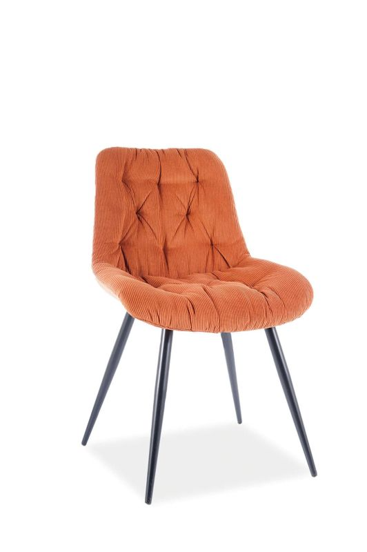 Moderná jedálenská stolička je vrcholom pohodlia a štýlu. Jej štýlový mäkký sedák obšitý módnou škoricovou látkou je nielen príjemný na dotyk, ale zároveň poskytuje mimoriadne pohodlie. S kombináciou skosených nôh a klasického tvaru, táto stolička ponúka elegantný moderný vzhľad a je ideálnym doplnkom pre každý interiér.