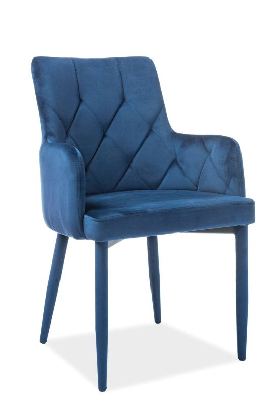 Moderná jedálenská stolička s podrúčkami v zamatovej látke, modrá