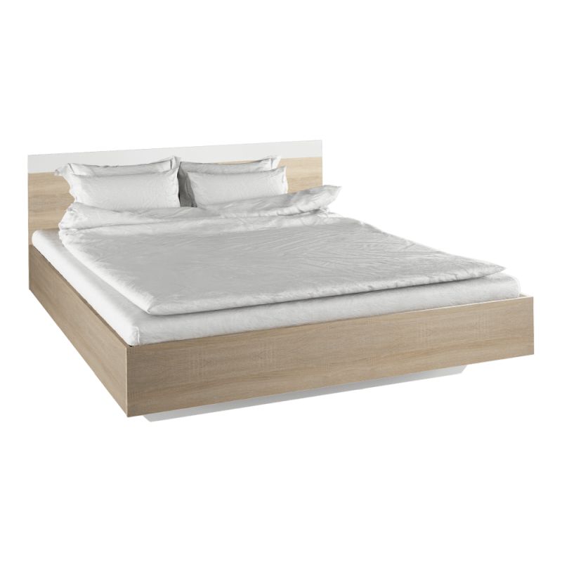 Posteľ vyrobená na Slovensku v modernom farebnom prevedení dub sonoma a biela, ktoré ladí so stenami v tmavých i svetlých odtieňoch. Kvalitná laminovaná drevotrieska zaručuje pevnosť a stabilitu. Posteľ je spevnená prídavnou konštrukciou, na ktorú sa kladie rošt