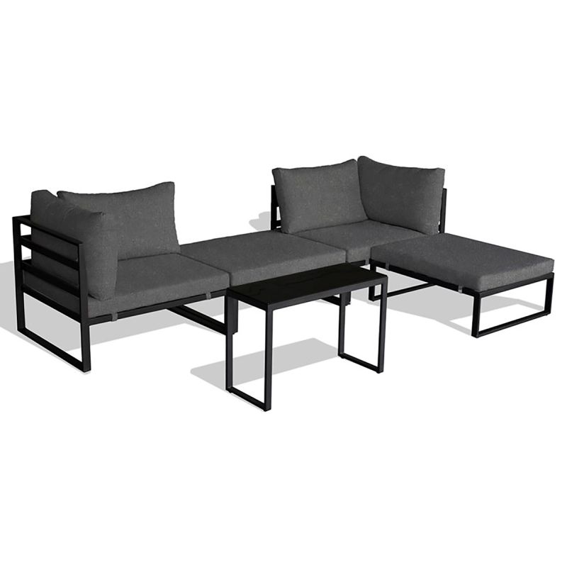 Set je tvorený štyrmi samostatnými modulmi, ktoré je možné skladať do ľubovoľných zoskupení. Súčasťou setu sú dva otomany, dve kreslá a stolík. Jednotlivé časti môžete zostaviť tak, ako práve potrebujete. Tento set kombinuje komfort a odolnosť, ideálny na relaxáciu aj posedenie s priateľmi.