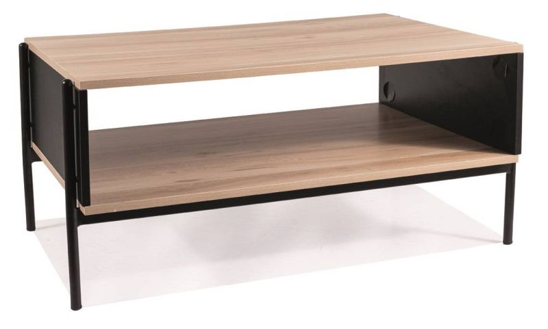 Moderný konferenčný stolík vyniká svojou kombináciou materiálov MDF v odtieni duba a čierneho matného kovu. Jeho nadčasový dizajn a kvalitné spracovanie poskytujú každej obývacej izbe originálny a moderný vzhľad.