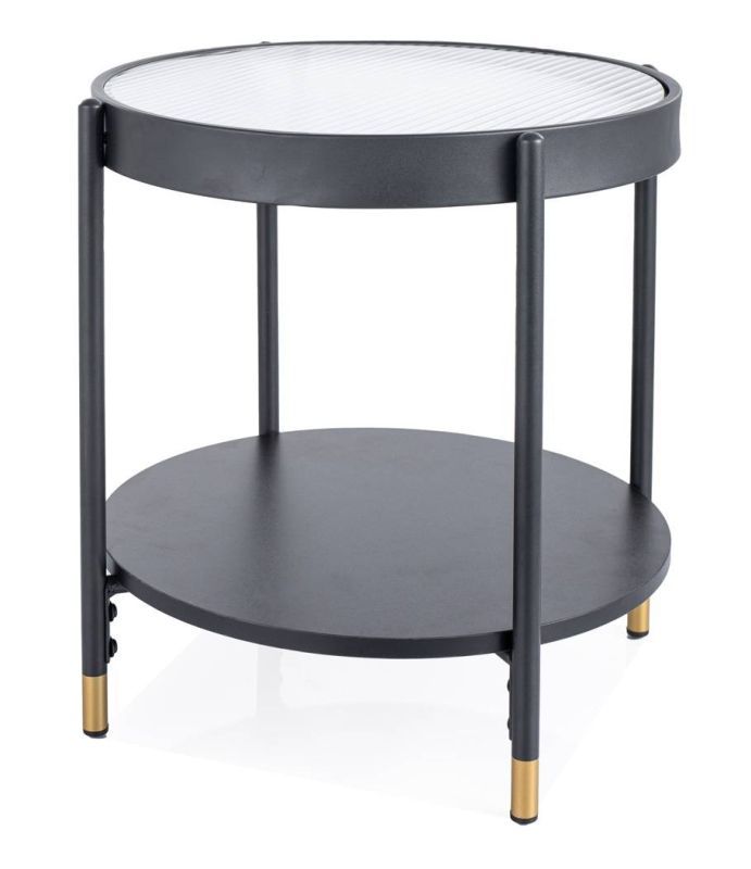 - Kombinácia materiálov: Stolík spája pevný kov s čiernym matným povrchom a číre sklo, čo vytvára sofistikovaný a moderný vzhľad.