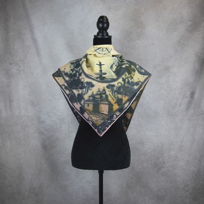 - Slovenský motív: Ornamenty a dizajn na šatke sú inšpirované slovenskou kultúrou a architektonickými pamiatkami, čím šatka vyjadruje úctu k slovenskému dedičstvu.