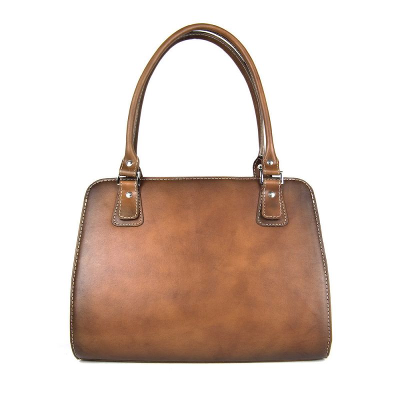 Módna kožená kabelka 8614 ručne tamponovaná a tieňovaná v Cigaro farbe