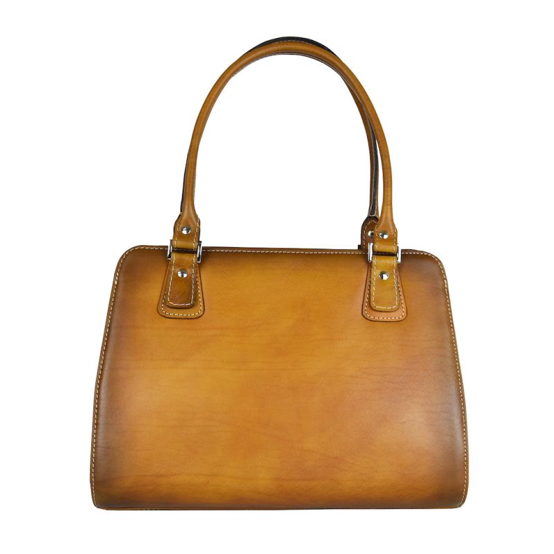 Módna kožená kabelka 8614 ručne tamponovaná a tieňovaná v tmavo žltej farbe