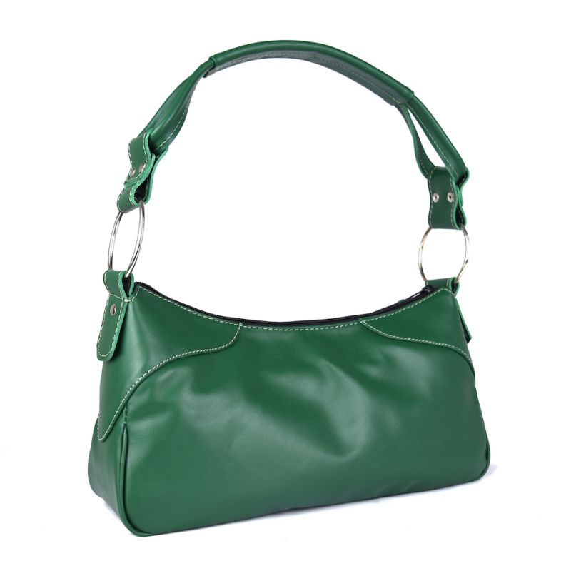 Módna kožená kabelka na rameno v zelenej farbe