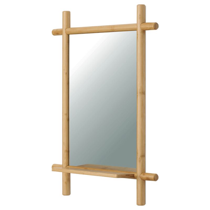 Nástenné bambusové zrkadlo s policou 55x74 cm, prírodné