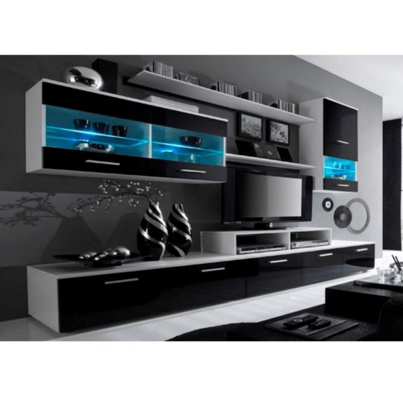 Obývacia stena, biela-čierna extra vysoký lesk HG