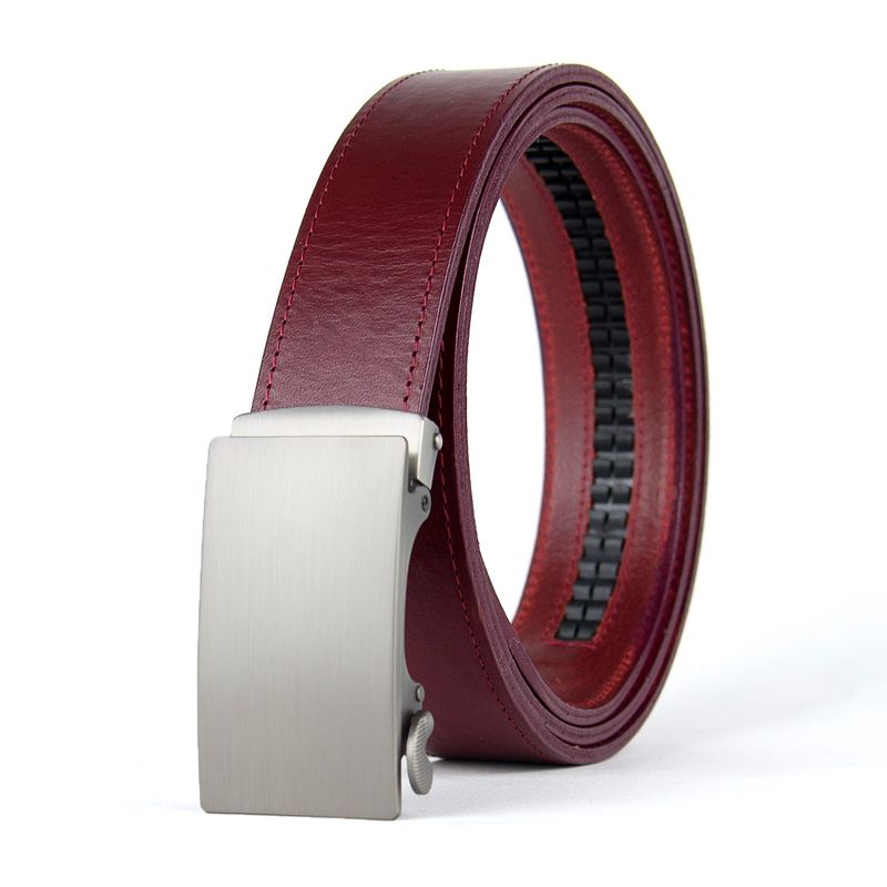Opasok z pravej kože s automatickou prackou ARGENTUM, Bordový