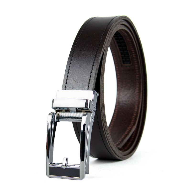 Opasok z pravej kože s automatickou prackou CHROME - Tmavo hnedá