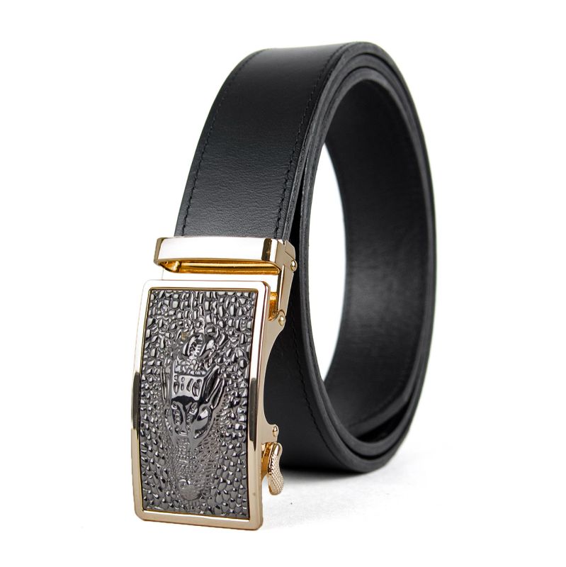 Opasok z pravej kože s automatickou prackou GOLD CROCO - Čierna