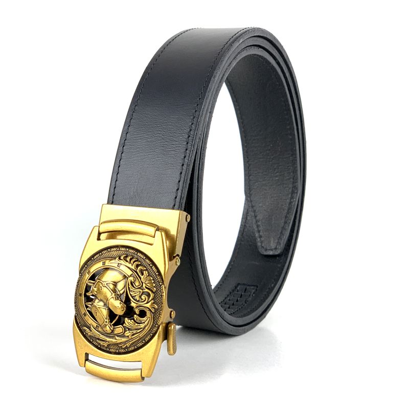 Opasok z pravej kože s automatickou prackou GOLD HORSES Čierna