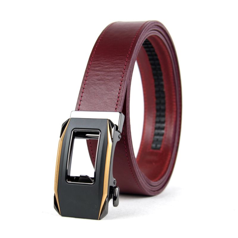 Opasok z pravej kože s automatickou prackou GOLD KEY - Bordová