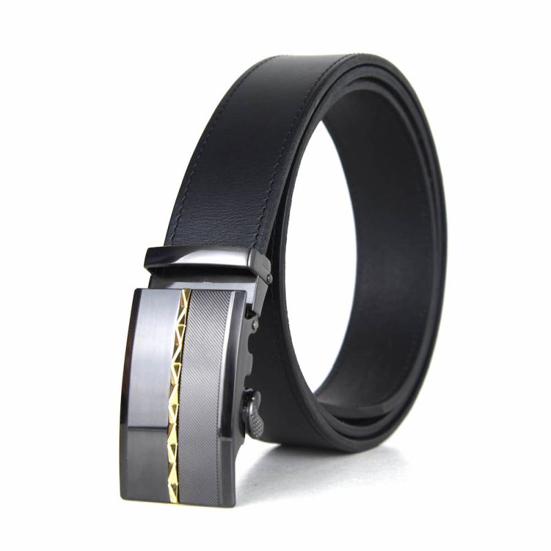 Opasok z pravej kože s automatickou prackou GOLD LINE Čierna