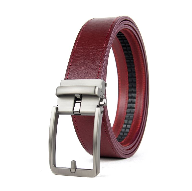 Opasok z pravej kože s automatickou prackou NICKEL CLOSE - Bordová