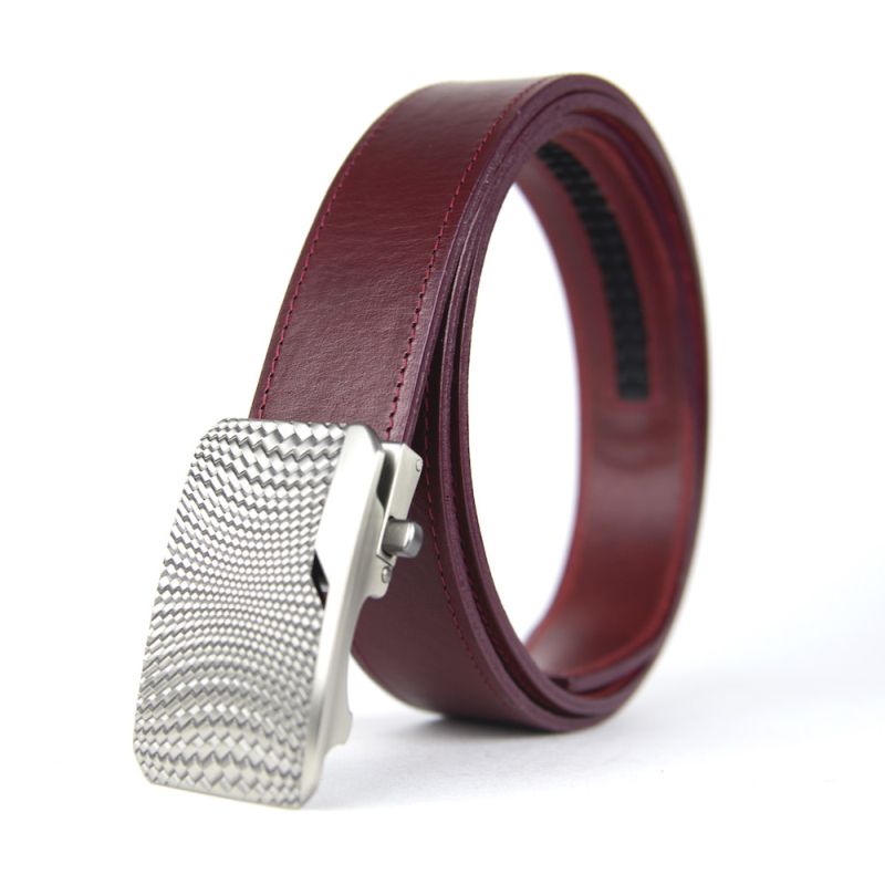 Opasok z pravej kože s automatickou prackou NICKEL KNITT - Bordová