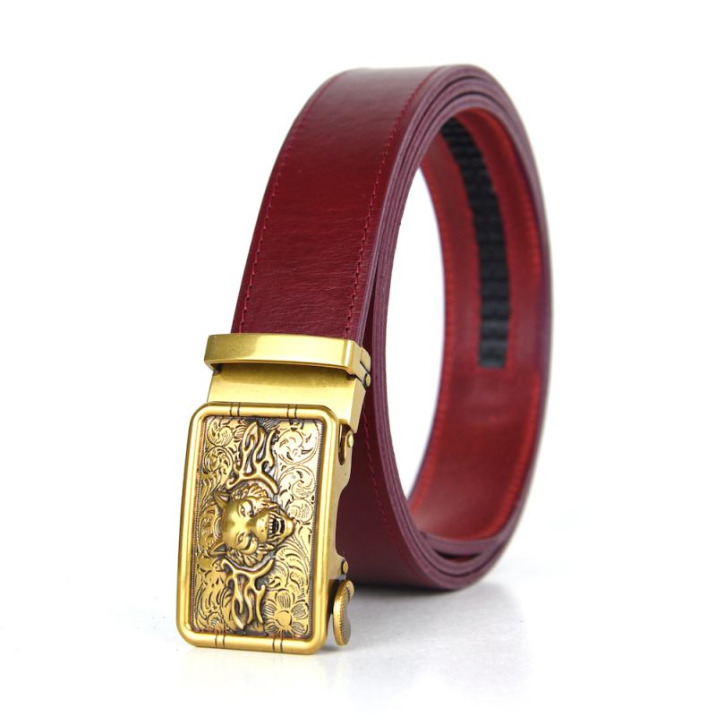Opasok z pravej kože s automatickou prackou OLD GOLD WOLF Bordová