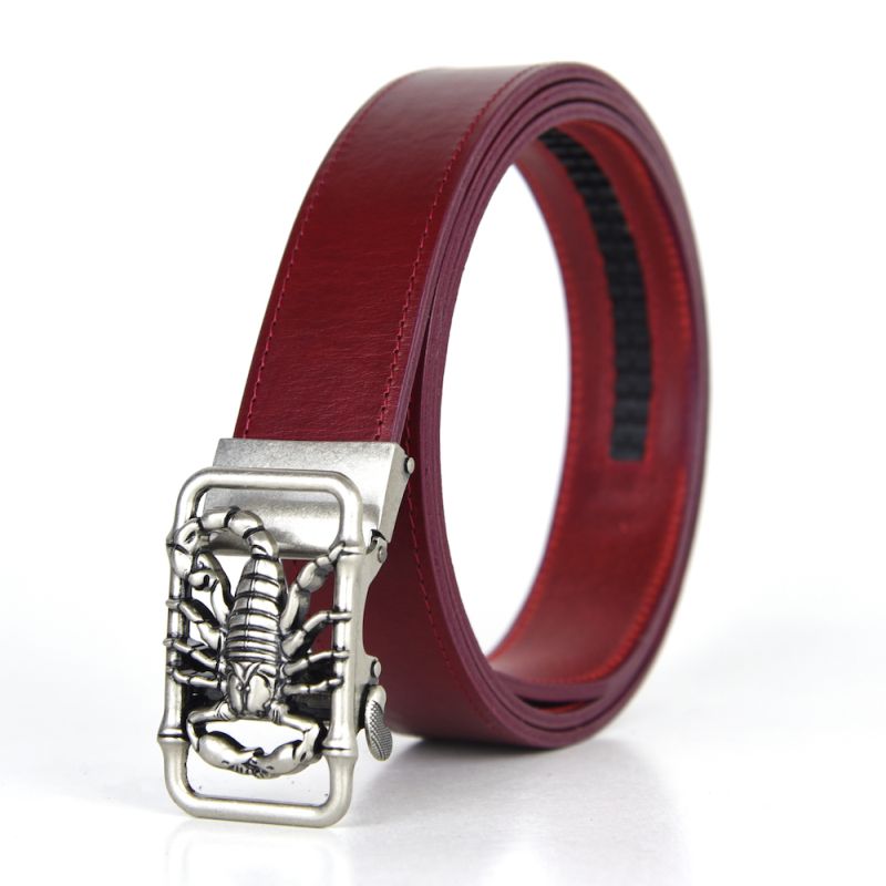 Opasok z pravej kože s automatickou prackou OLD SILVER SCORPION Bordová