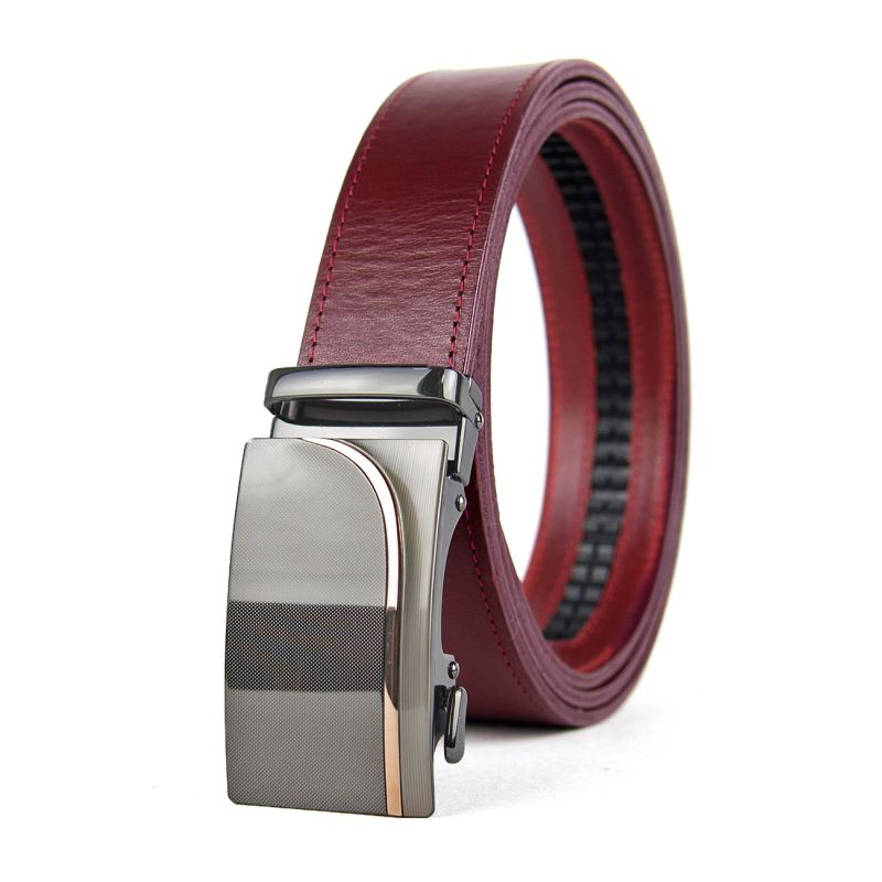 Opasok z pravej kože s automatickou prackou OVERTIME - Bordová