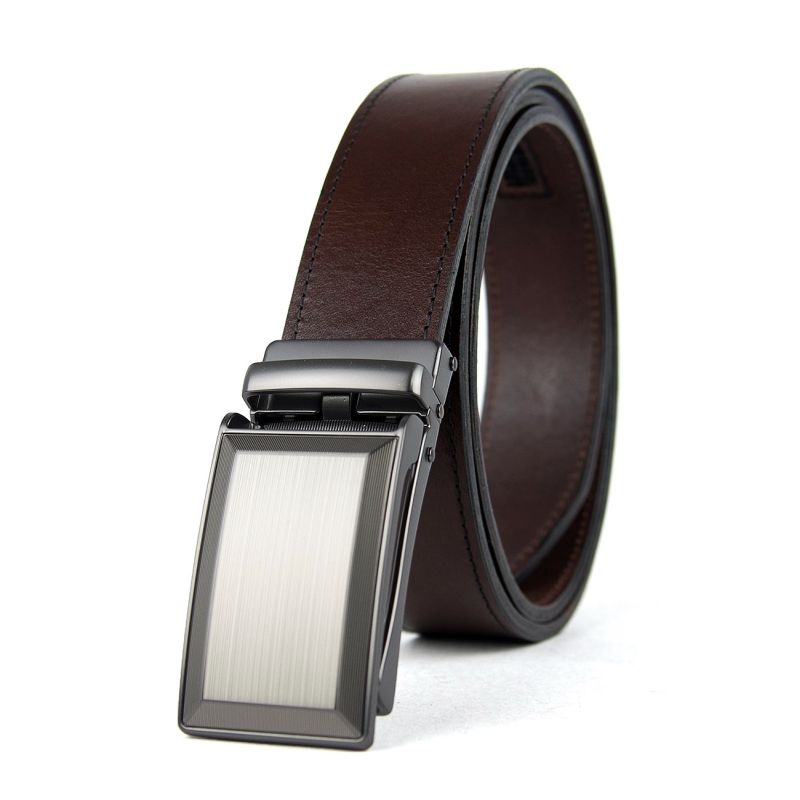 Luxusný kožený opasok vyrobený z kvalitnej pravej talianskej kože s modernou automatickou prackou a praktickým track systémom, ktorý umožňuje nastavenie s presnosťou na mieru bez klasických dierok