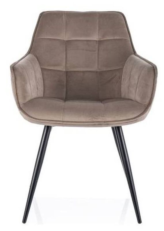 Originálna jedálenská stolička-kreslo, zamat. látka, čierny mat-tmavo béžová bluvel 40