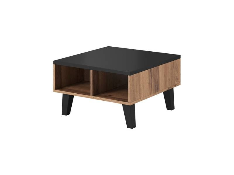 Tento malý konferenčný stolík v škandinávskom štýle, kombinujúci dub wotan a čiernu farbu, je ideálnym doplnkom pre milovníkov pokojného a minimalistického dizajnu. Jeho kompaktné rozmery a praktický úložný priestor v podobe poličiek poskytujú funkčné a esteticky príjemné riešenie pre menšie obývacie izby alebo priestory.
