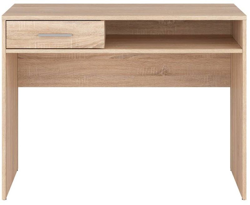 Praktický písací stôl v prevedení dub sonoma s jednou zásuvkou a odkladacou policou je ideálnym riešením do pracovne, detskej či študentskej izby. Vďaka jednoduchému dizajnu a funkčnému usporiadaniu ponúka dostatok priestoru na prácu aj uskladnenie drobností.