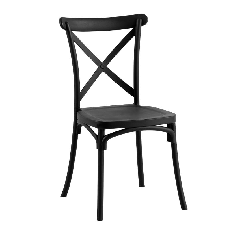 Praktická a štýlová stolička v čiernej farbe, ktorá je ideálna pre interiéry aj exteriéry. Vďaka stohovateľnosti je ľahko skladovateľná a premiestniteľná, čo ju robí ideálnou na terasu, záhradu, balkón alebo na rôzne firemné akcie